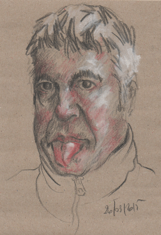 Depuis hier avec mon autoportrait à l'acrylique, ... , fait sur fond "rose", on va dire "rosé"... On me demande si je vois la vie en rose...