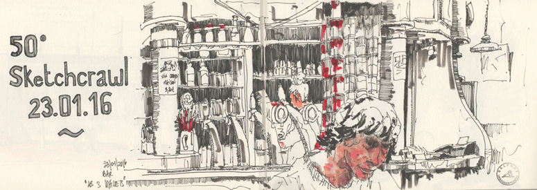 Nous étions 8 au café "Les 3 maillets", place d'armes pour débuter ce 50ème sketchcrawl!