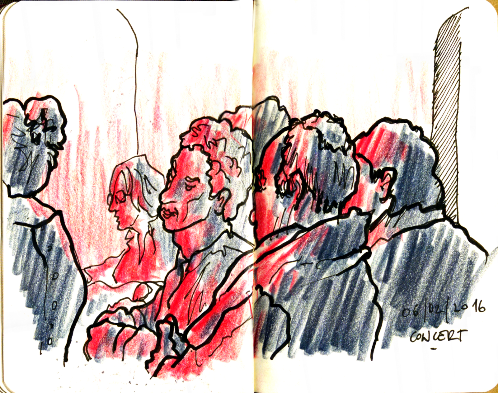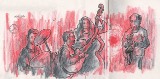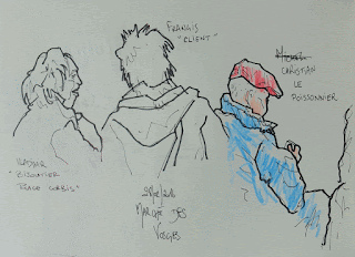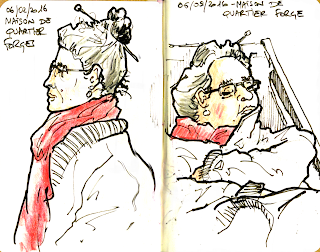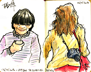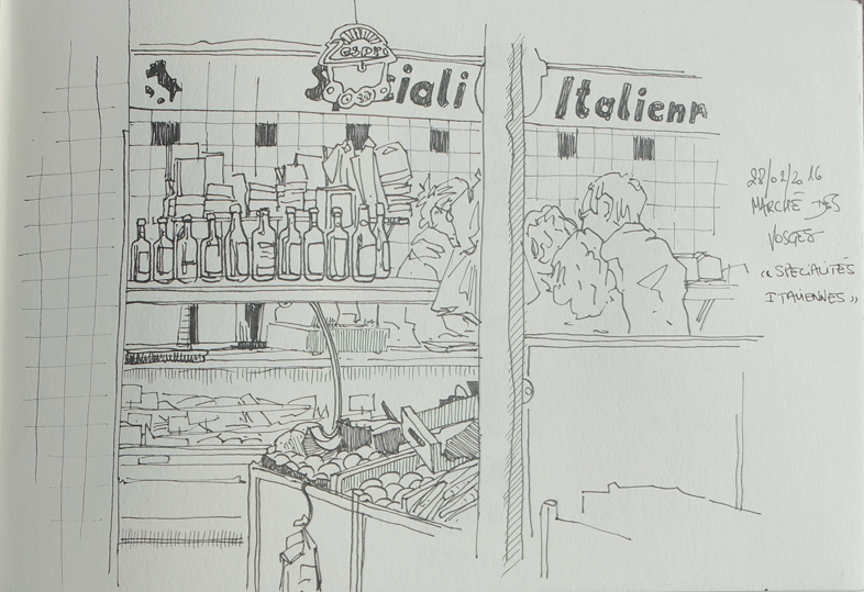 Difficile de dessiner dehors, tellement il faisait froid. Heureusement que le marché couvert est chauffé et qu'on peut s'y réchauffé avec un petit noir.