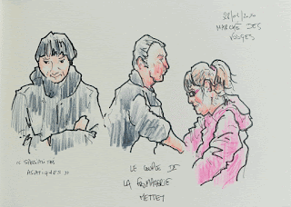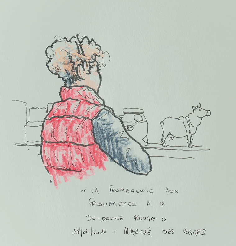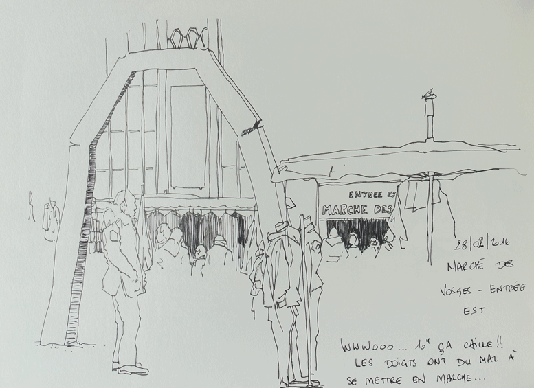 Ce matin, deuxième matin croquis, au marché des Vosges