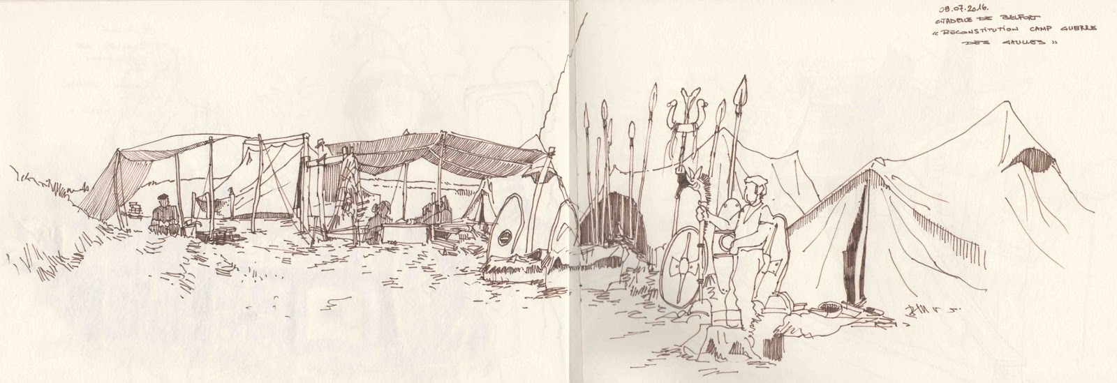 Ensuite guerre des Gaulles, les guerriers de préparent au combat, des guerriers de tout âge...